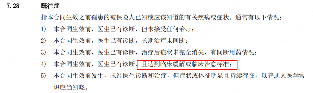 【已達(dá)到臨床緩解或臨床治愈標(biāo)準(zhǔn)】的疾病也屬于既往癥,什么意思呢?