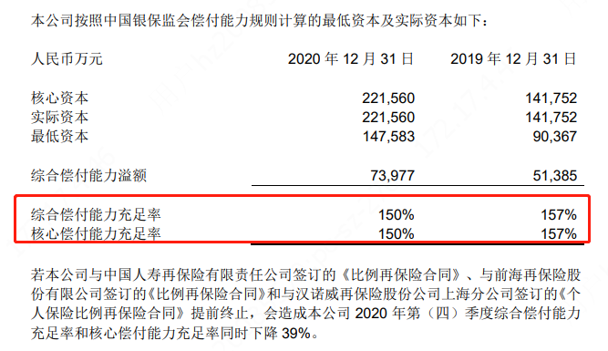 再看下年報的償付數(shù)據(jù),2019年是157%,2020年是150%,我們基本可以判斷復星聯(lián)合保險公司的償付率在150%-160%之間徘徊。發(fā)揮穩(wěn)定!