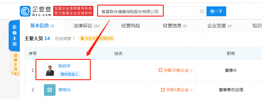 1)復星聯(lián)合健康保險公司的最終受益人是陳啟宇