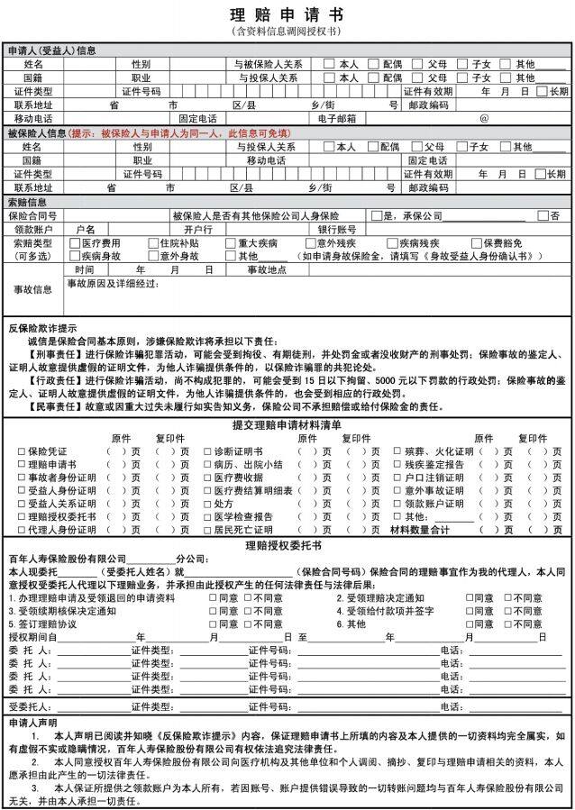 文末給大家分享一張某保險(xiǎn)公司的理賠申請(qǐng)書(shū):