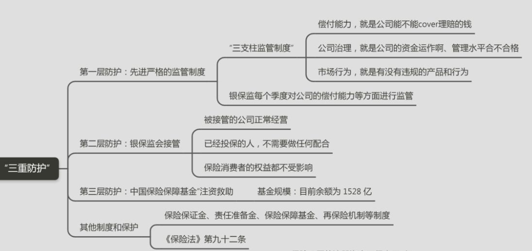 除了第一層監(jiān)管的防護(hù),也提前準(zhǔn)備了一套完整的“兜底”程序,銀保監(jiān)會(huì)、保障基金都是強(qiáng)有力的支柱。
