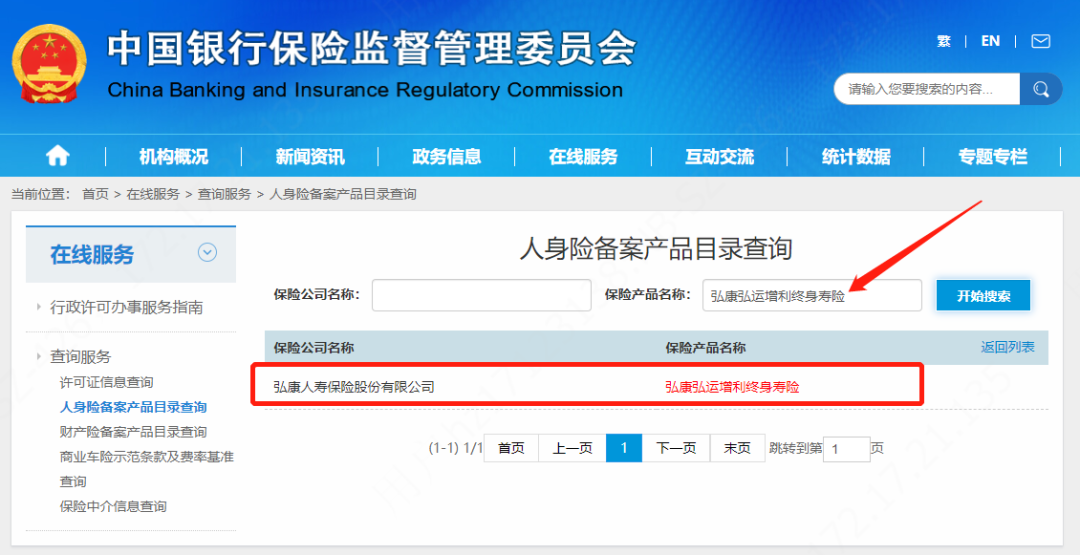 以金滿意足臻享版的保單為例,上面的名字是弘康弘運(yùn)增利終身壽險(xiǎn),我們可以在銀保監(jiān)會(huì)官網(wǎng)的備案目錄直接查到這個(gè)產(chǎn)品,正規(guī)靠譜。