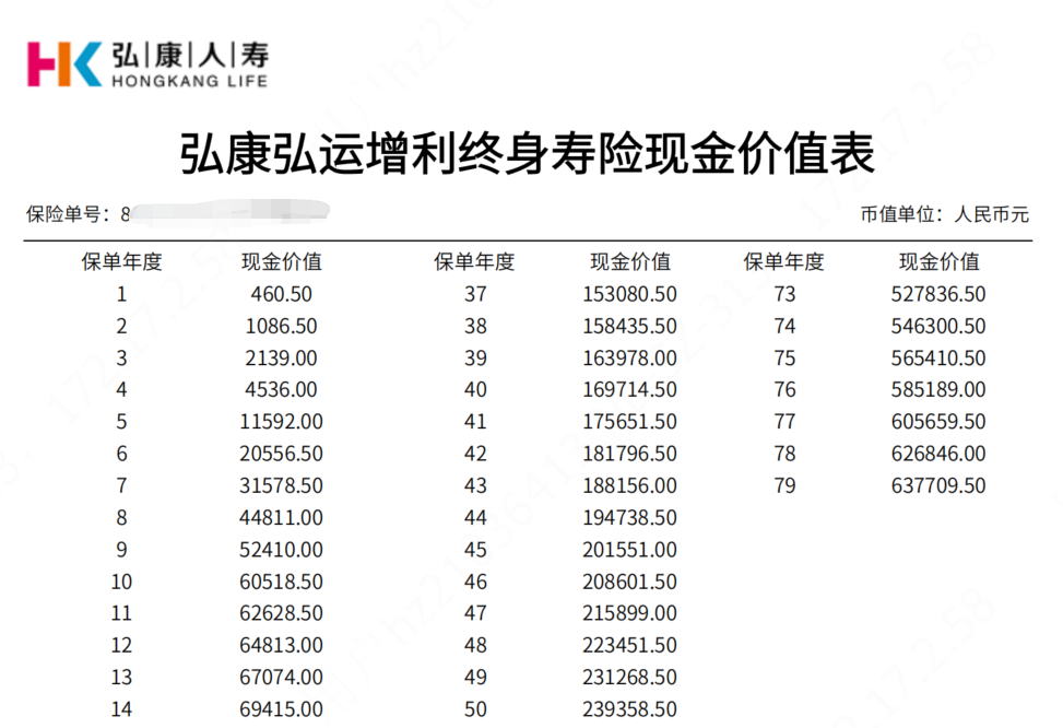 保單里的現(xiàn)金價(jià)值長(zhǎng)這樣(如下圖),每一年有多少現(xiàn)價(jià),白紙黑字都寫在合同里了。