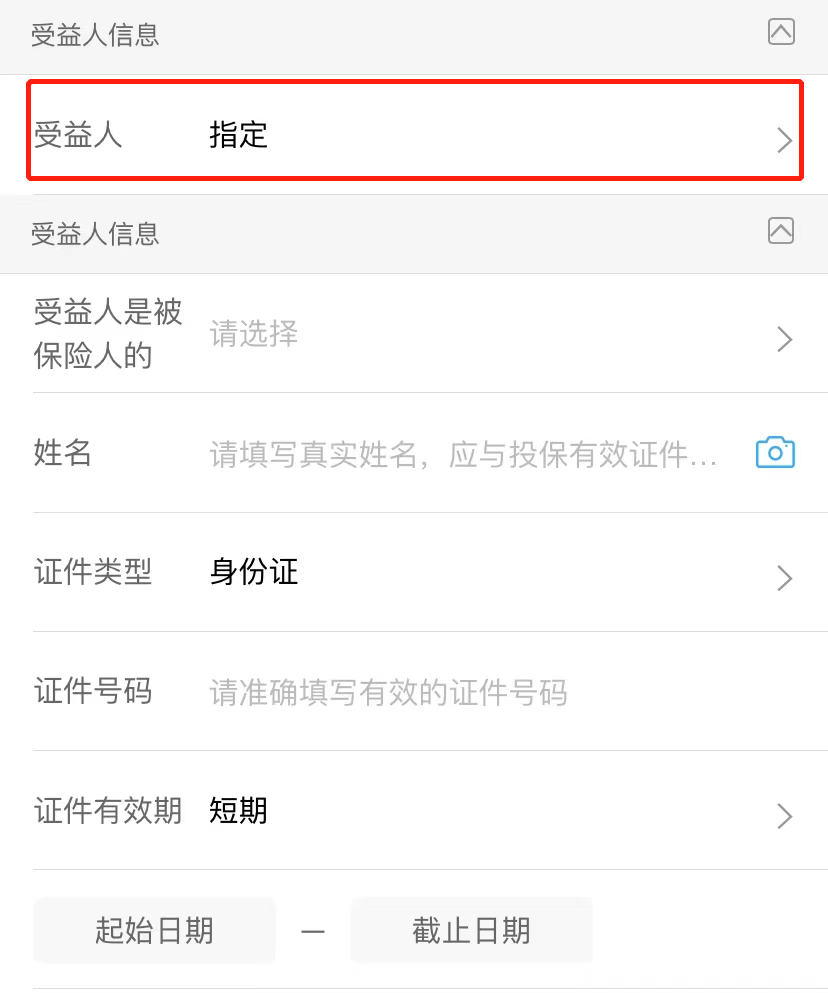 如果想特別指定孩子、父母等能獲得保險(xiǎn)金,可以在投保填寫信息時(shí),選擇“指定受益人”選項(xiàng),一般可以填一個(gè)或多個(gè),每個(gè)人拿多少錢也能指定。