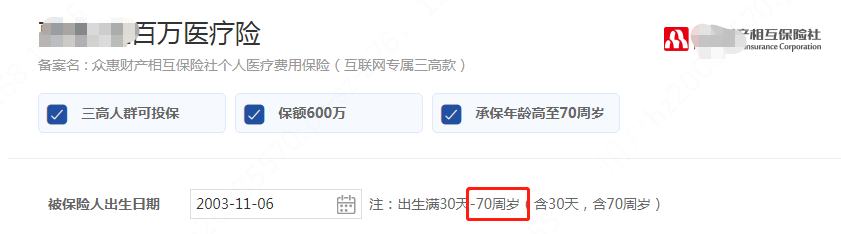 隨便點(diǎn)開(kāi)一個(gè)百萬(wàn)醫(yī)療險(xiǎn),可以看到投保年齡。