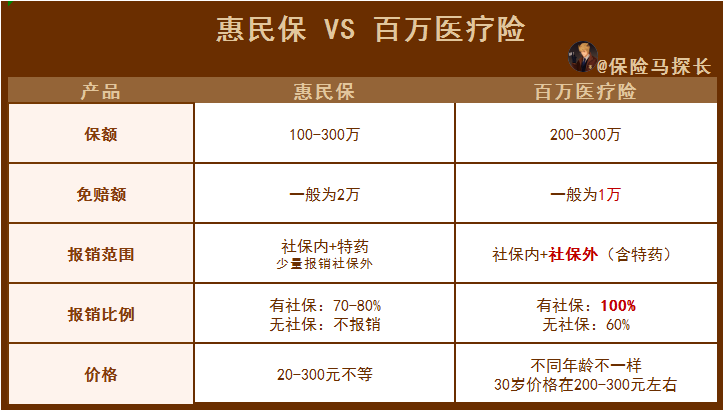 惠民保跟百萬(wàn)醫(yī)療險(xiǎn)的對(duì)比如圖: