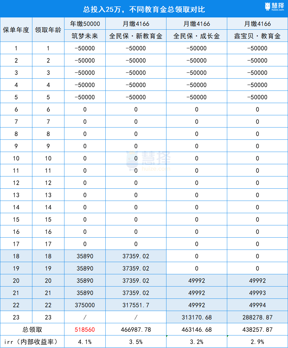 所以,我建議大家直接算教育金的總領(lǐng)取,總領(lǐng)取哪個高就買哪個。