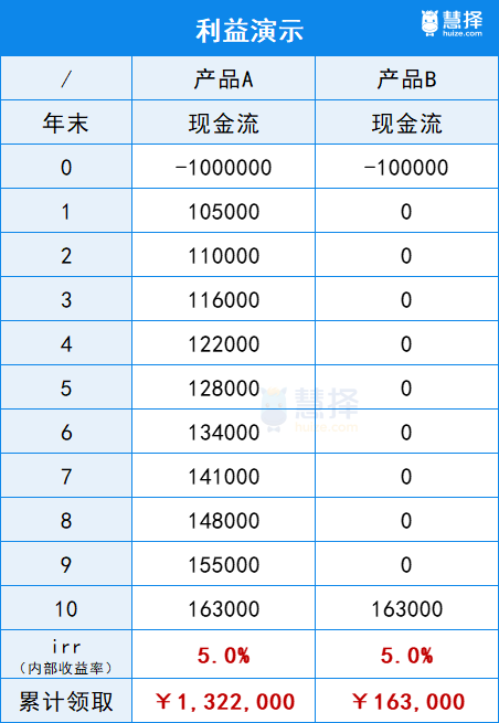 你會驚訝地發(fā)現(xiàn),產(chǎn)品B利率居然和產(chǎn)品A一樣,都是5%。