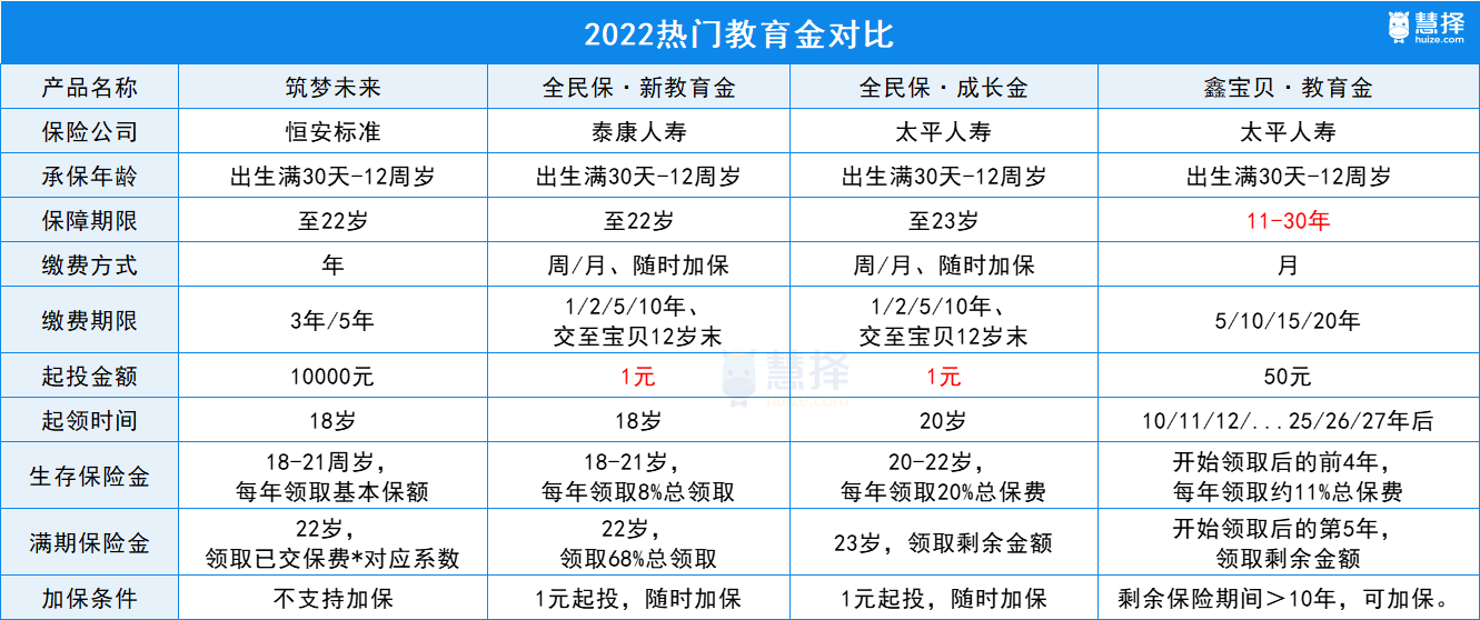 但領(lǐng)取時間比筑夢未來和全民保新教育金晚2年,適合上學(xué)較晚或者做碩博教育金。