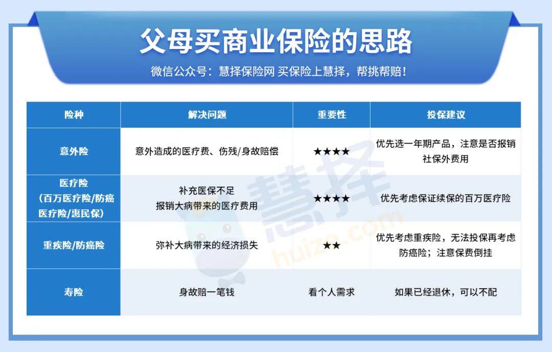 但百萬醫(yī)療險的健康要求非常高,如果父母有慢性病或者其他小問題,建議考慮惠民保,再搭配一份防癌醫(yī)療險。