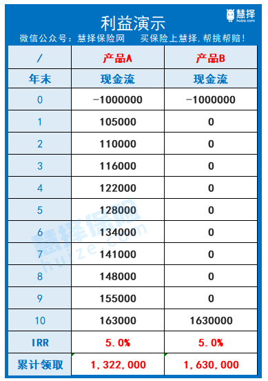 你會驚訝地發(fā)現(xiàn),產(chǎn)品B利率居然和產(chǎn)品A一樣,都是5%。