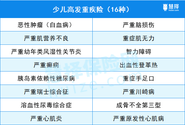 這里也給大家整理了孩子高發(fā)的少兒重疾病種,大家可以對照著去檢查: