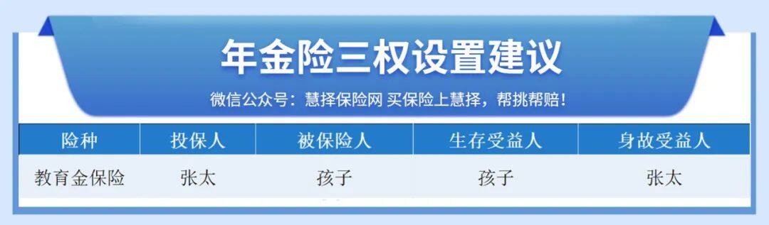 于是在經(jīng)濟(jì)情況還不錯(cuò)時(shí),張?zhí)鳛橥侗H?,給2歲的孩子買了一份教育年金保險(xiǎn),3年繳費(fèi),每年繳50萬(wàn),保到孩子25周歲。