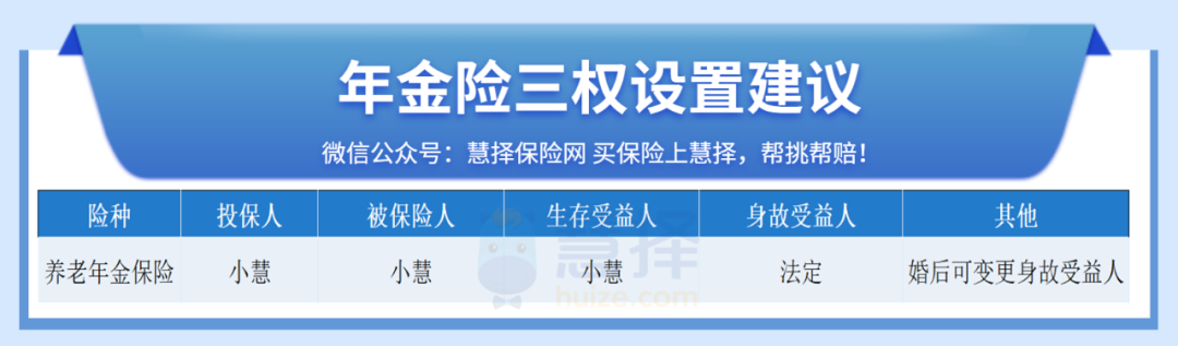 于是小慧給自己投保了一份保終身的養(yǎng)老年金保險(xiǎn),自己作為投保人和被保險(xiǎn)人。