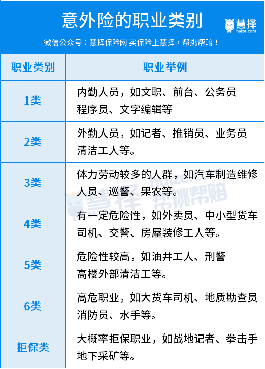 意外險,多數(shù)支持1-3類職業(yè)投保