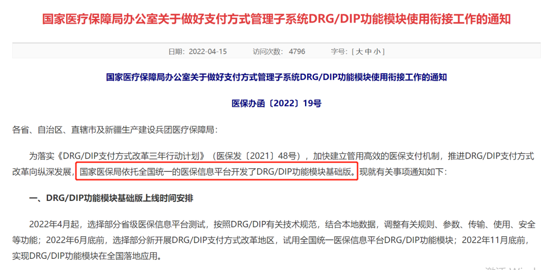 今年4月醫(yī)保局提到,將依托全國(guó)統(tǒng)一醫(yī)保信息平臺(tái)開(kāi)發(fā)DRG/DIP功能模塊。
