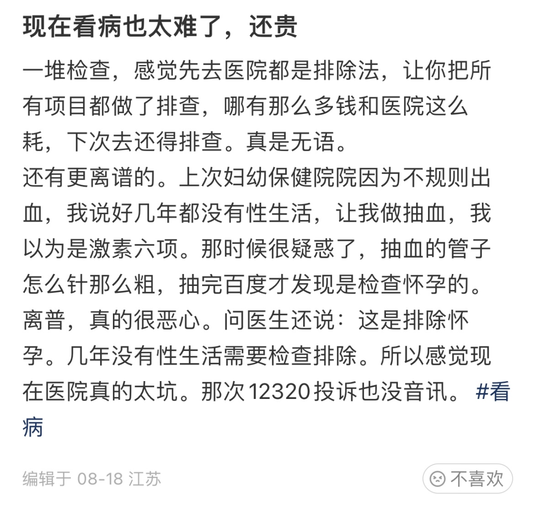 不少網(wǎng)友在網(wǎng)上吐槽:“現(xiàn)在看病又難又貴”,還會(huì)被要求做一些不必要的檢查。