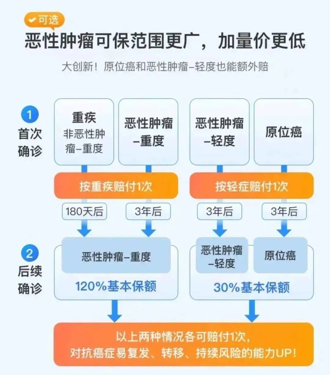 往常的產(chǎn)品,二次癌癥的賠付都只針對(duì)惡性腫瘤-重度。