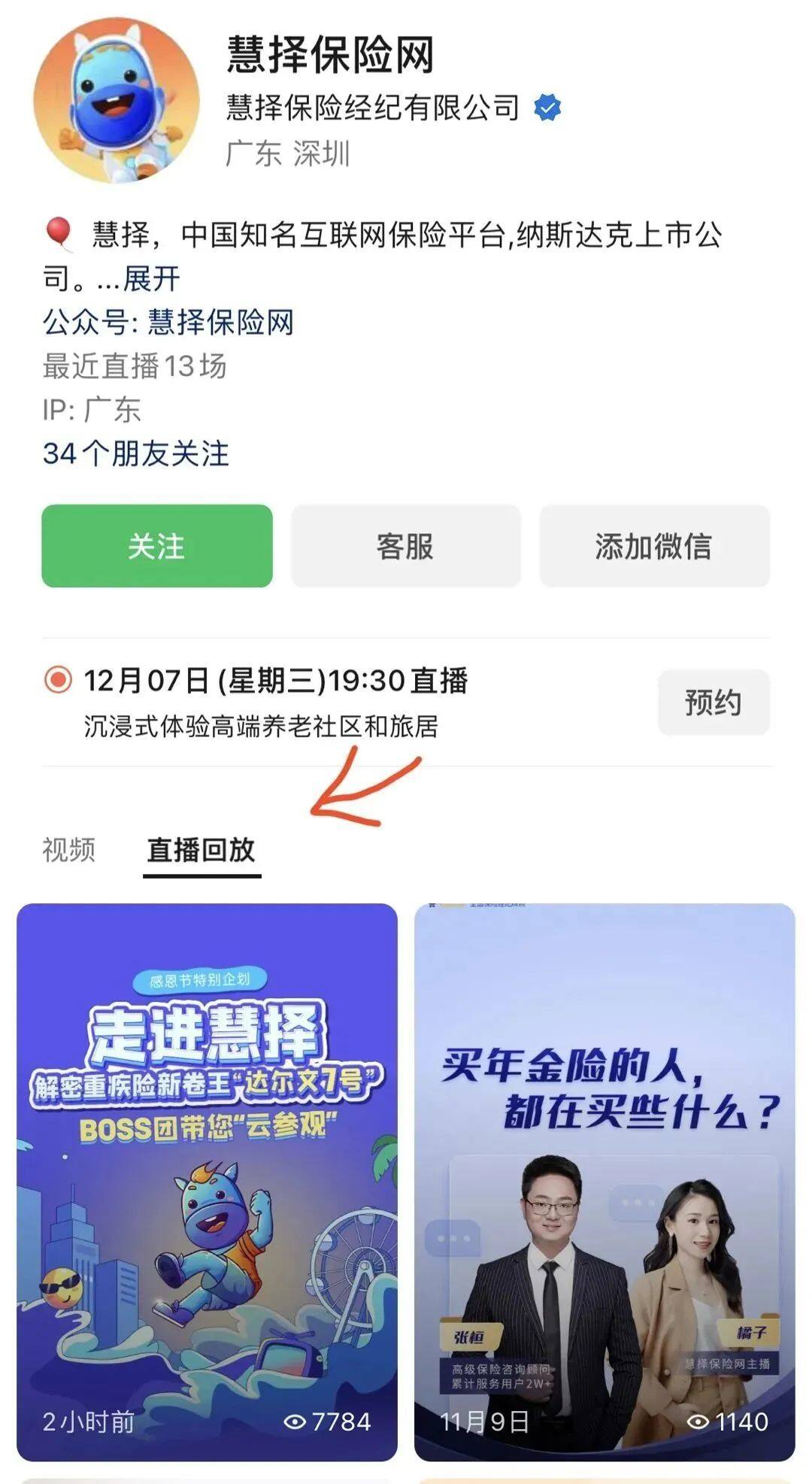完整的直播回放,在微信端進(jìn)入“慧擇保險(xiǎn)網(wǎng)”視頻號(hào)主頁(yè),點(diǎn)擊“直播回放”即可看到。