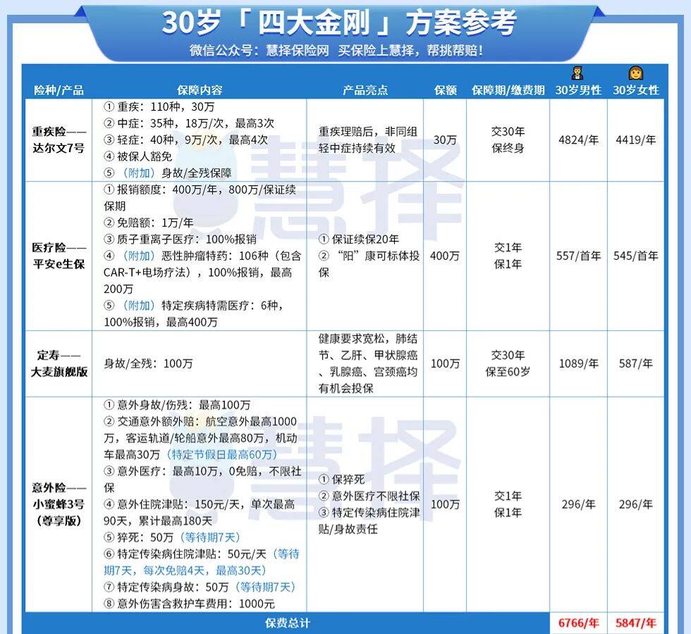 把“四大金剛”(意外險、醫(yī)療險、重疾險、壽險)配上,其實(shí)保障就基本夠了。