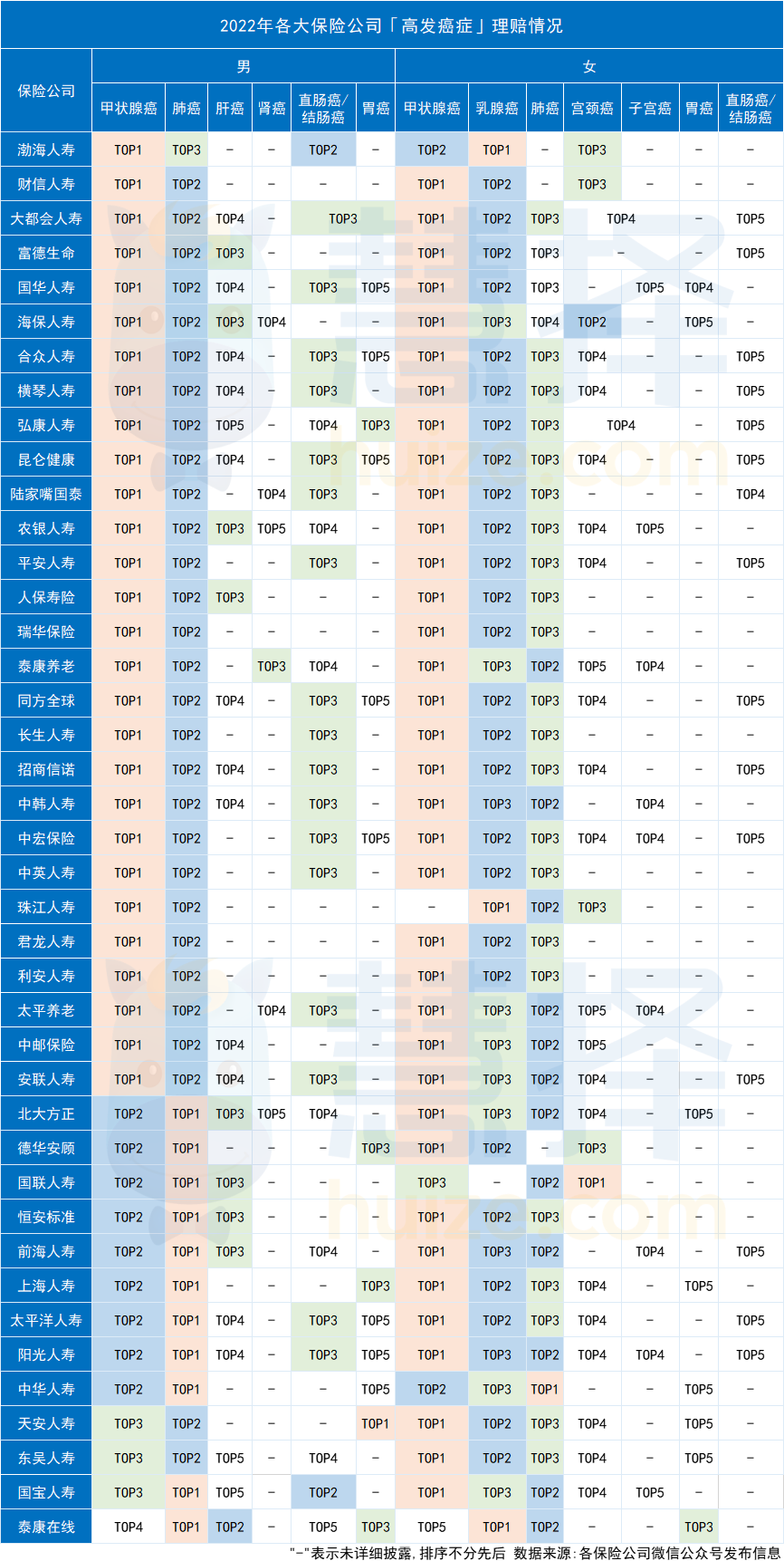 由于不同的保險(xiǎn)公司公布數(shù)據(jù)的詳細(xì)程度不一樣,部分公司數(shù)據(jù)不詳。