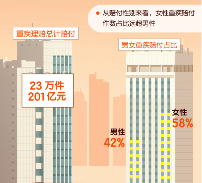 理賠年報里也看得挺清楚:女性重疾賠付占比,比男性高不少。