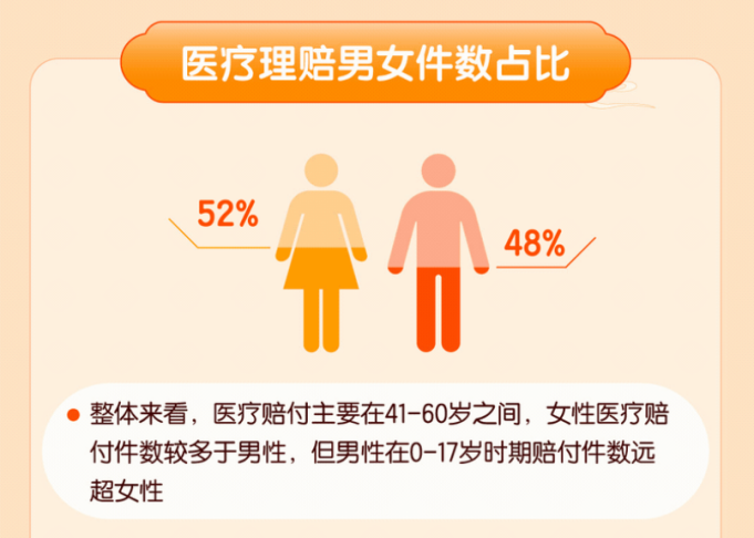 女性的醫(yī)療險理賠件數(shù)占比,比男性略高。