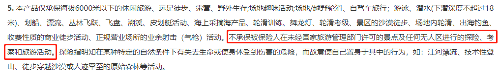 如果我們是參加高風(fēng)險(xiǎn)的戶外活動(dòng)項(xiàng)目,則需留意保障責(zé)任是否包含“擴(kuò)展高風(fēng)險(xiǎn)活動(dòng)”。
