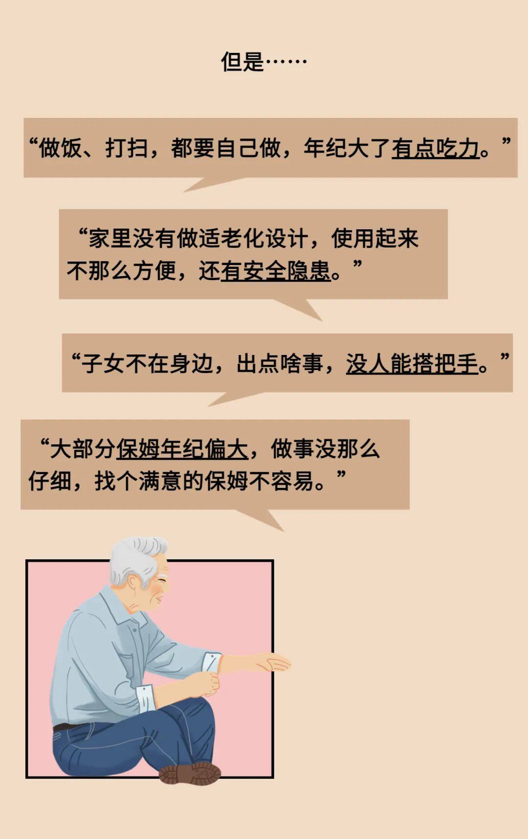 99%的中國老年人都選擇居家養(yǎng)老,因為國內(nèi)的養(yǎng)老專業(yè)機構(gòu)發(fā)展還在起步階段,像國外那種每天能接送往返社區(qū)養(yǎng)老機構(gòu)的日托服務(wù)很少很少。