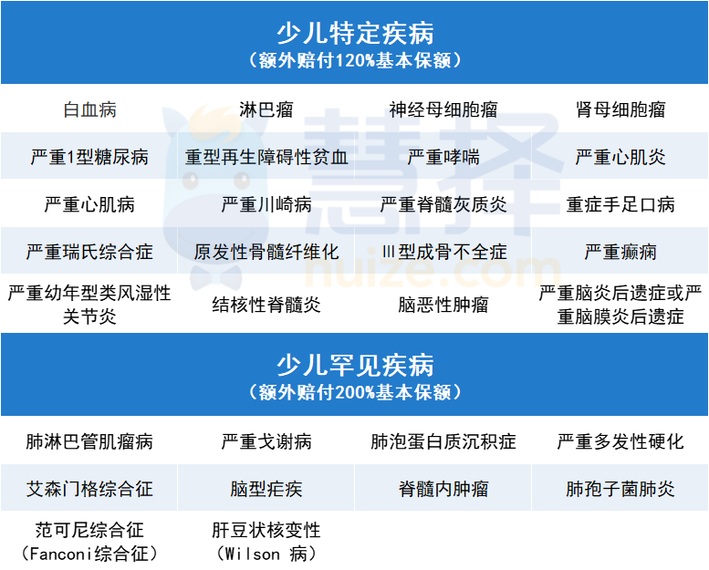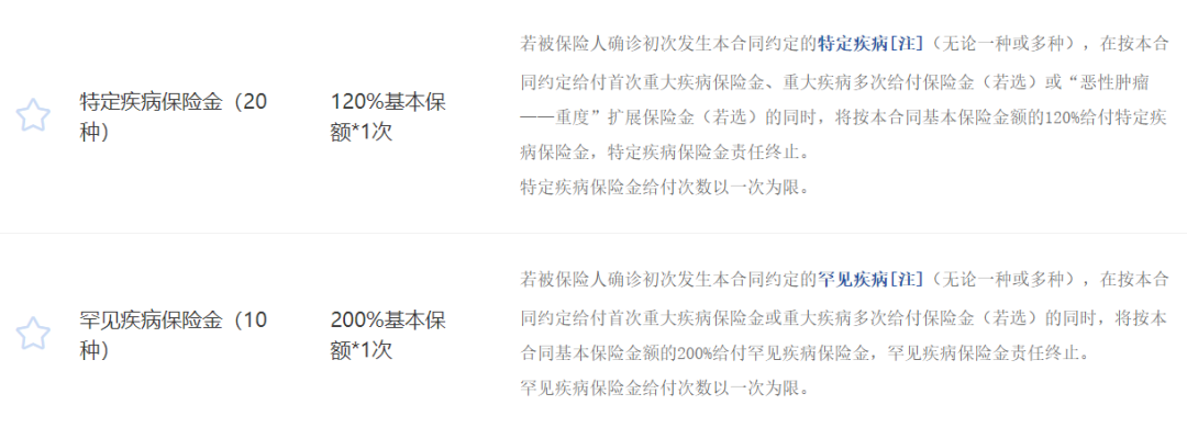 以今年上線的少兒重疾小淘氣1號為例,20種特定重癥和10種罕見重癥,有額外的保額賠付??