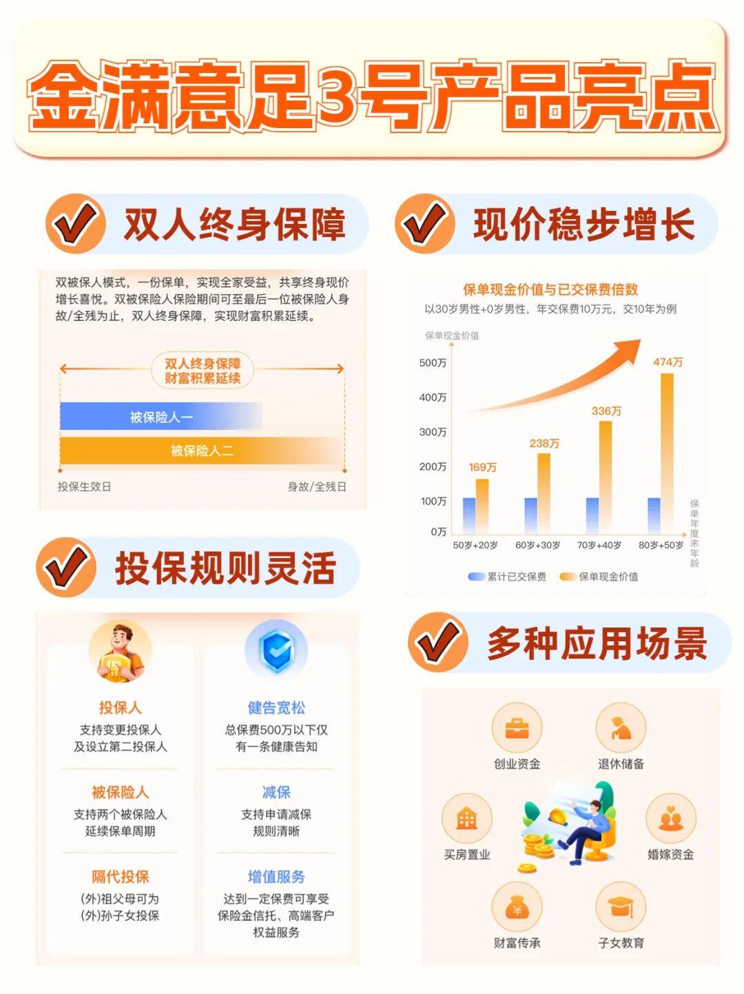 這類需求沒有固定時(shí)間,那么增額終身壽就會(huì)更合適。