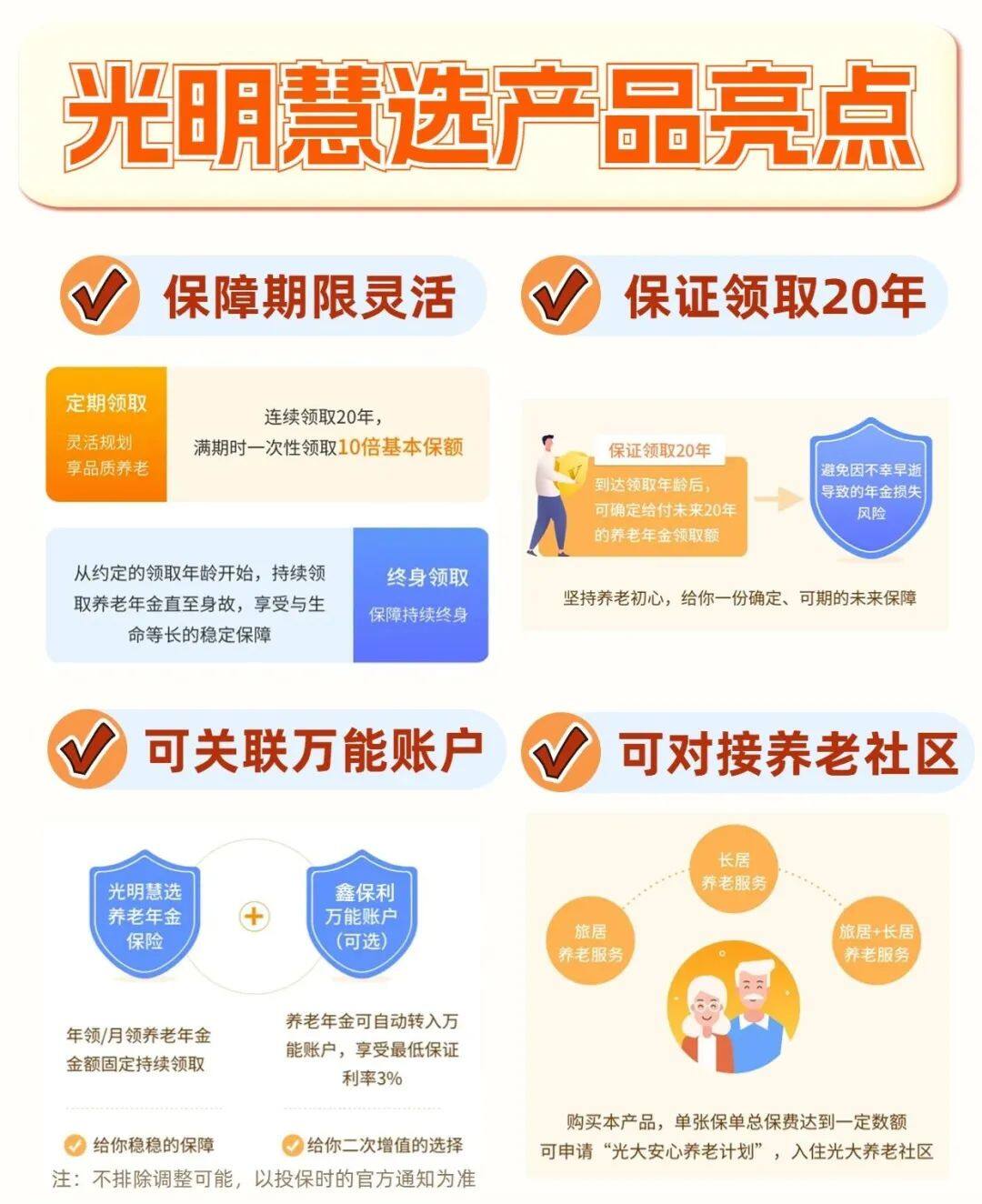 比如光明一生(慧選版),養(yǎng)老金領(lǐng)取金額比較可觀,還能關(guān)聯(lián)萬能賬戶。