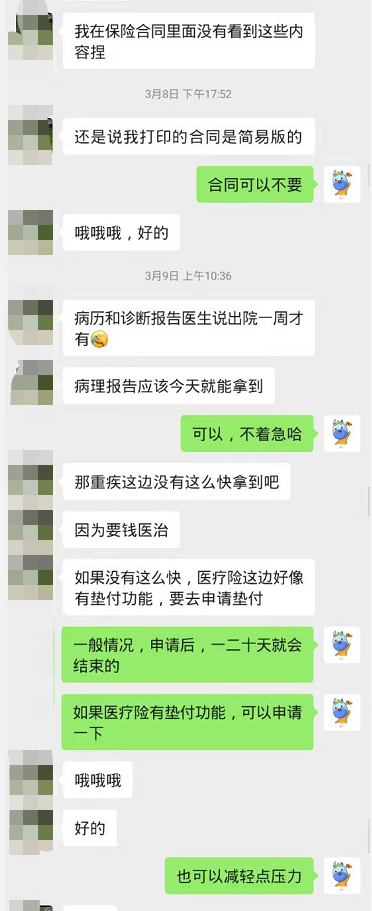 但無論如何,肯定是得治的。想到丈夫投保的重疾險(xiǎn),她先聯(lián)系了小馬理賠。
