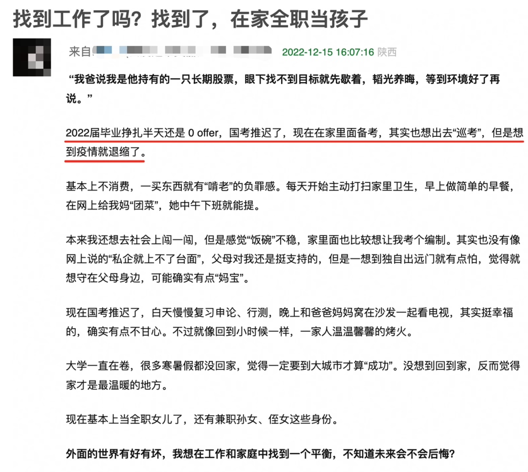 其實(shí),大部分在家的兒女們,并不是“混吃等死”式躺平,更多的只是一個(gè)過渡狀態(tài)。