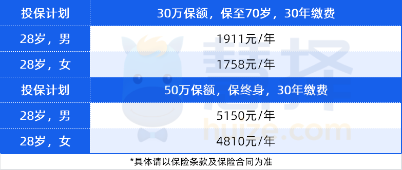 28歲買,保障到70歲,30萬保額,分30年繳費,每年不到2千就能搞定,性價比非常高。