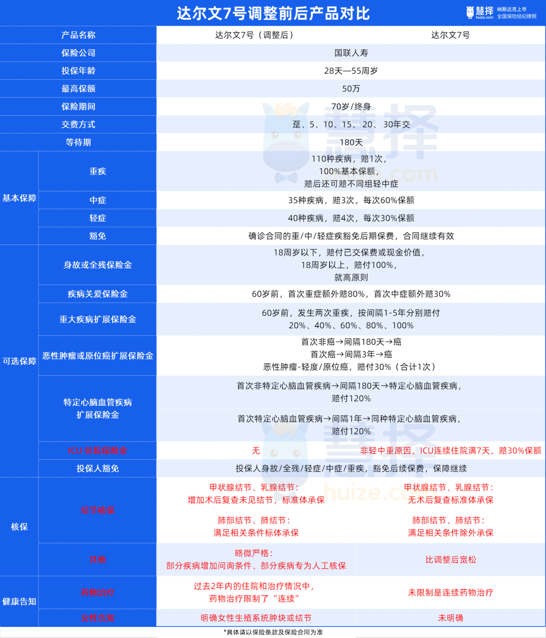 當然,達爾文7號在部分疾病的核保上也收緊了一些,