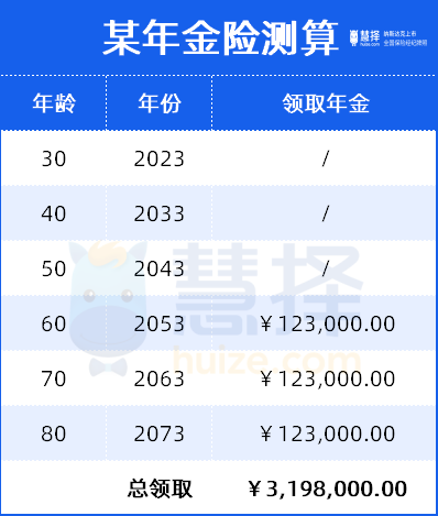 從55歲開始,每年穩(wěn)定有12.3萬,到80歲總領(lǐng)取有300多萬。