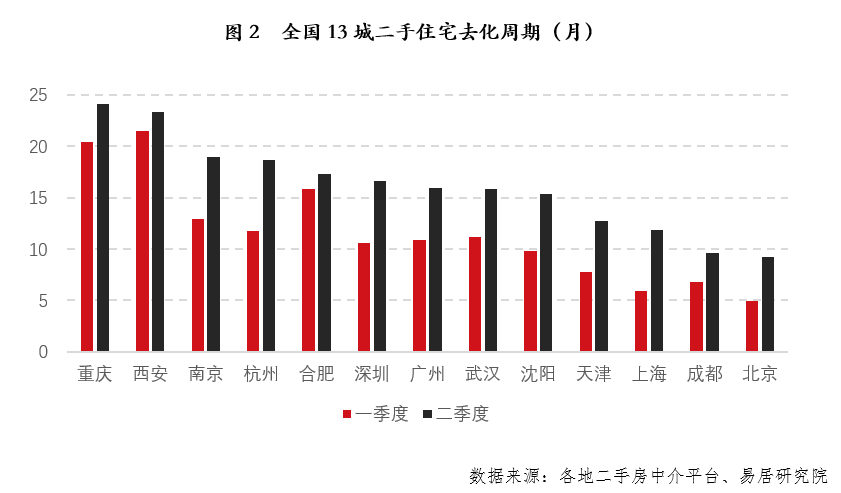 今年一季度全國13城二手住宅去化周期為10個(gè)月,而二季度該指標(biāo)為15個(gè)月,都出現(xiàn)了明顯的增長。