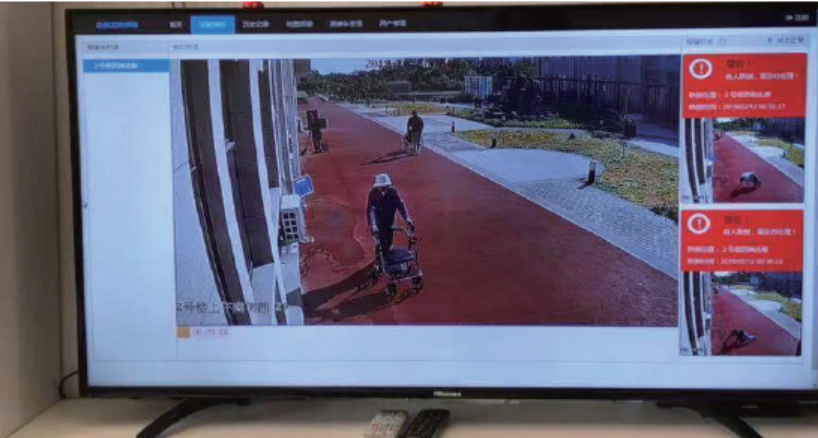 所以光大養(yǎng)老社區(qū)在重點公共區(qū)域動了點“心眼”,用視頻AI技術及時監(jiān)測老人是否跌倒: