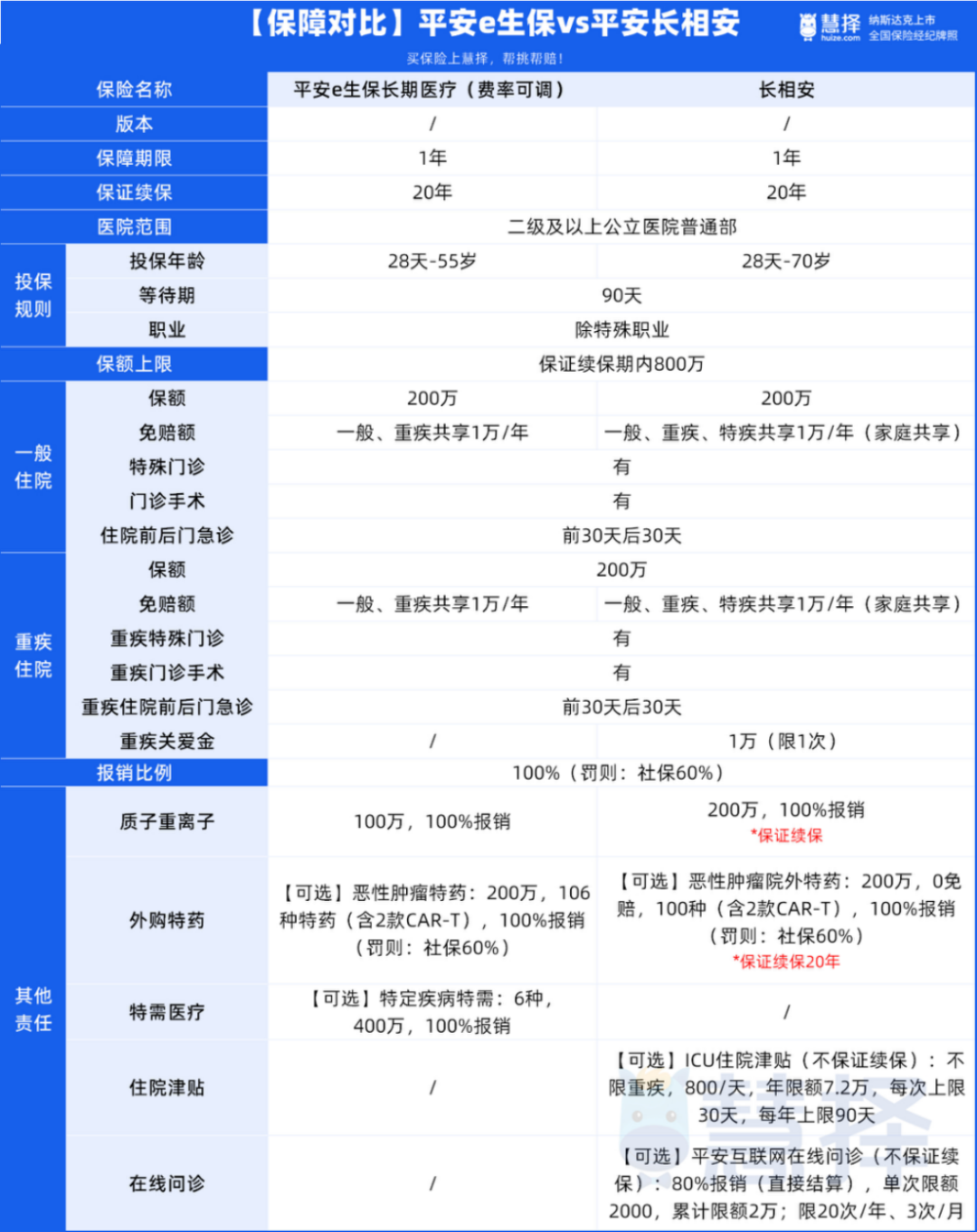 對比它家另一款叫「平安e生保」的百萬醫(yī)療險,「平安長相安」做了升級,保障更加優(yōu)秀。