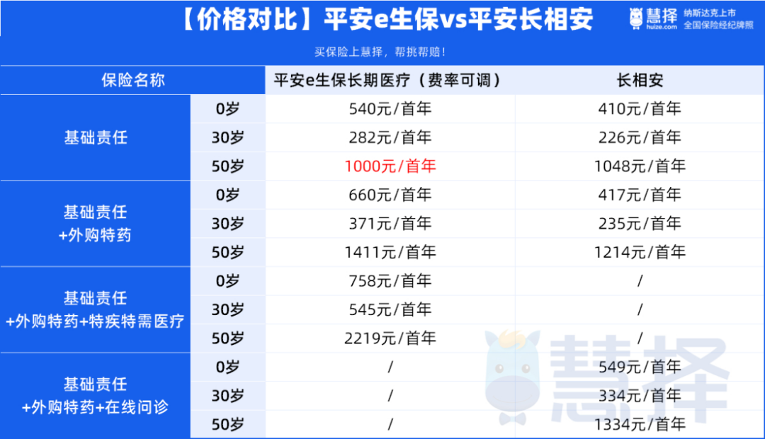 看表格,老人買基礎責任,平安e生保便宜一丟丟;