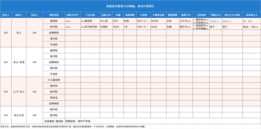 這個表格,一方面可以打印出來給家人留底,一方面,也方便自己定期盤清楚有哪些保險。