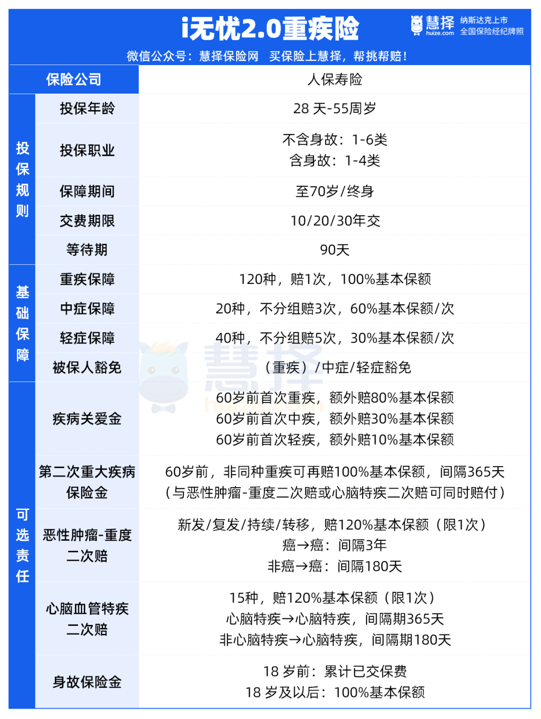 但保障責任比較簡單,如果介意也可以選擇【i無憂2.0重疾險】。