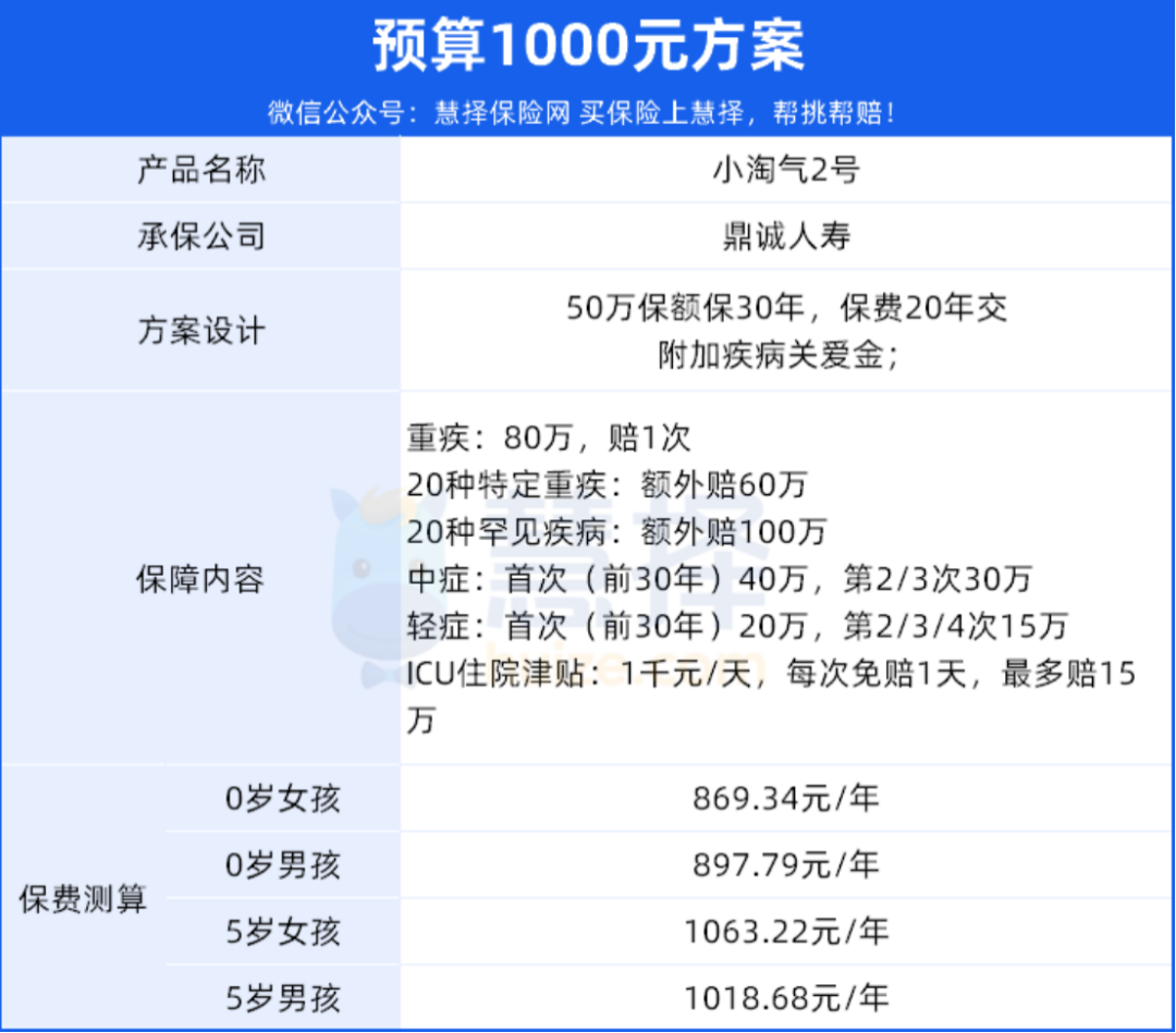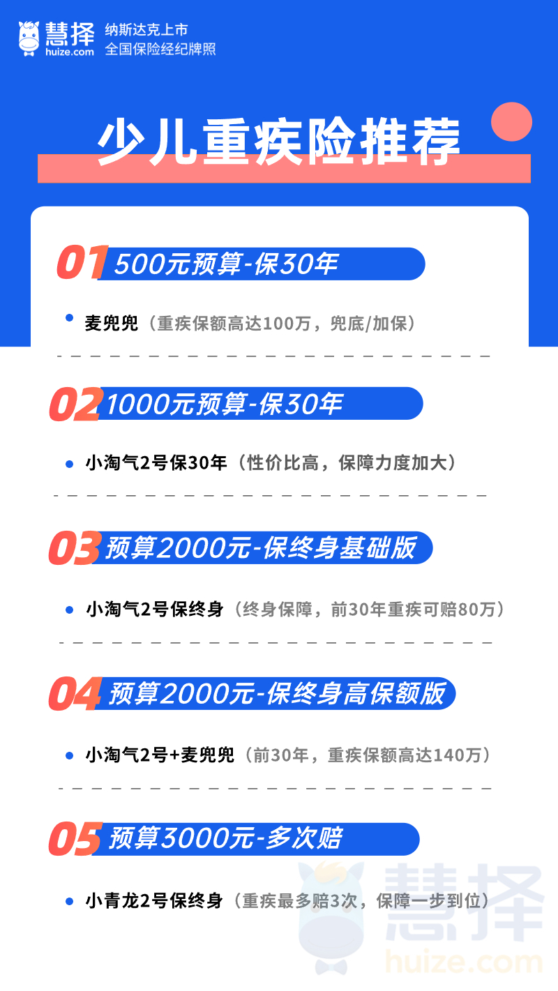 預(yù)算1000元以內(nèi),小馬老師推薦小淘氣2號少兒重疾險(xiǎn)。