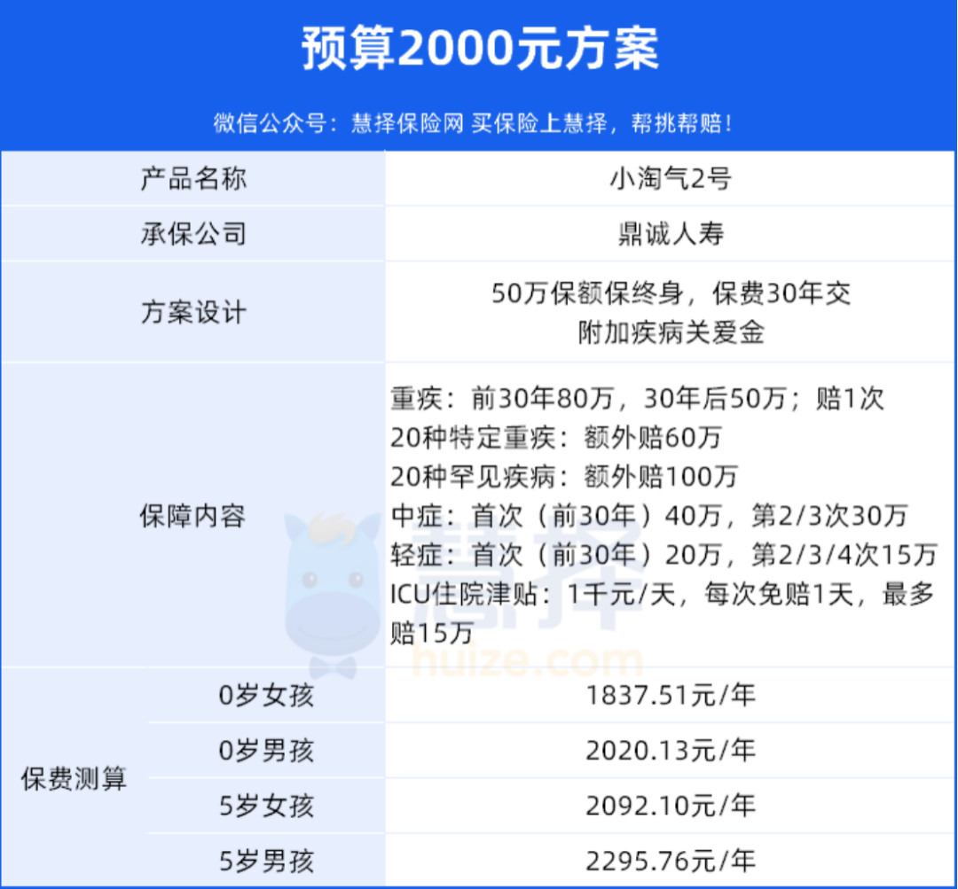 預(yù)算2000元,保終身基礎(chǔ)方案