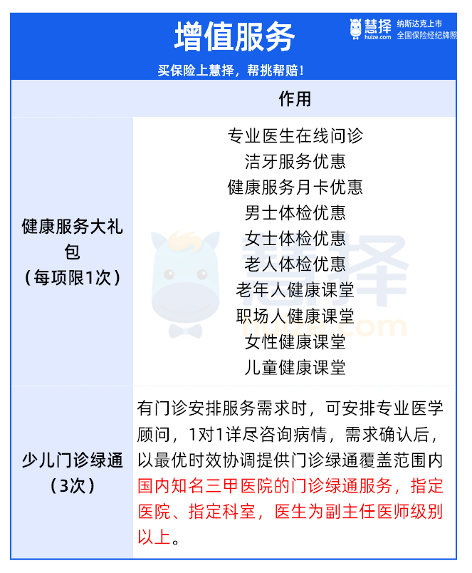 而且不限意外事故和疾病,孩子平時感冒發(fā)燒比較著急的時候也能用。一年有3次機(jī)會,可指定醫(yī)院、指定科室,醫(yī)生為副主任醫(yī)師級別以上(但不可指定醫(yī)生),非常實用。