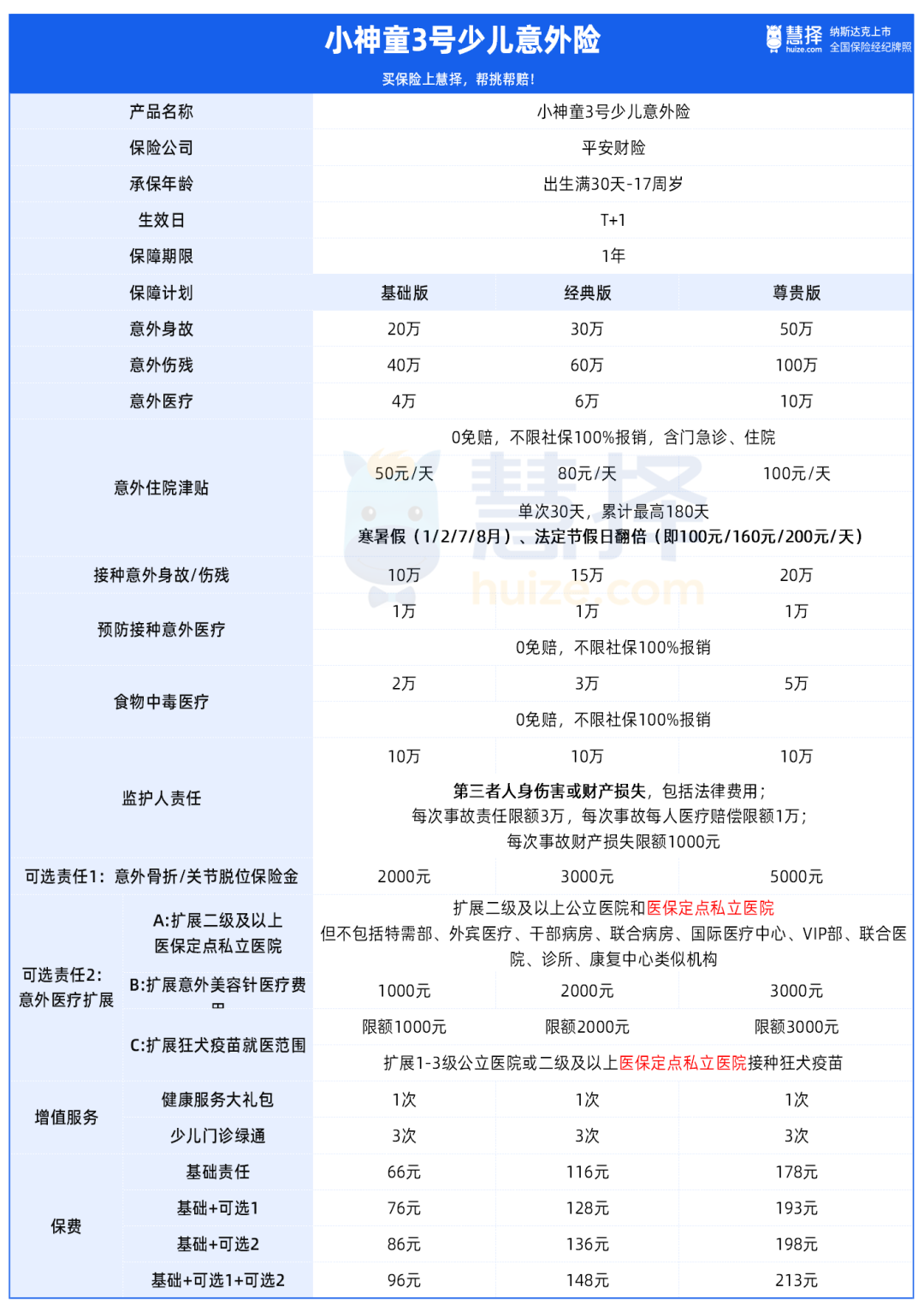 對于平安小神童3號意外險的保障責(zé)任和保障范圍還有疑問的,可以預(yù)約慧擇保險咨詢顧問,我們1v1為你解答。