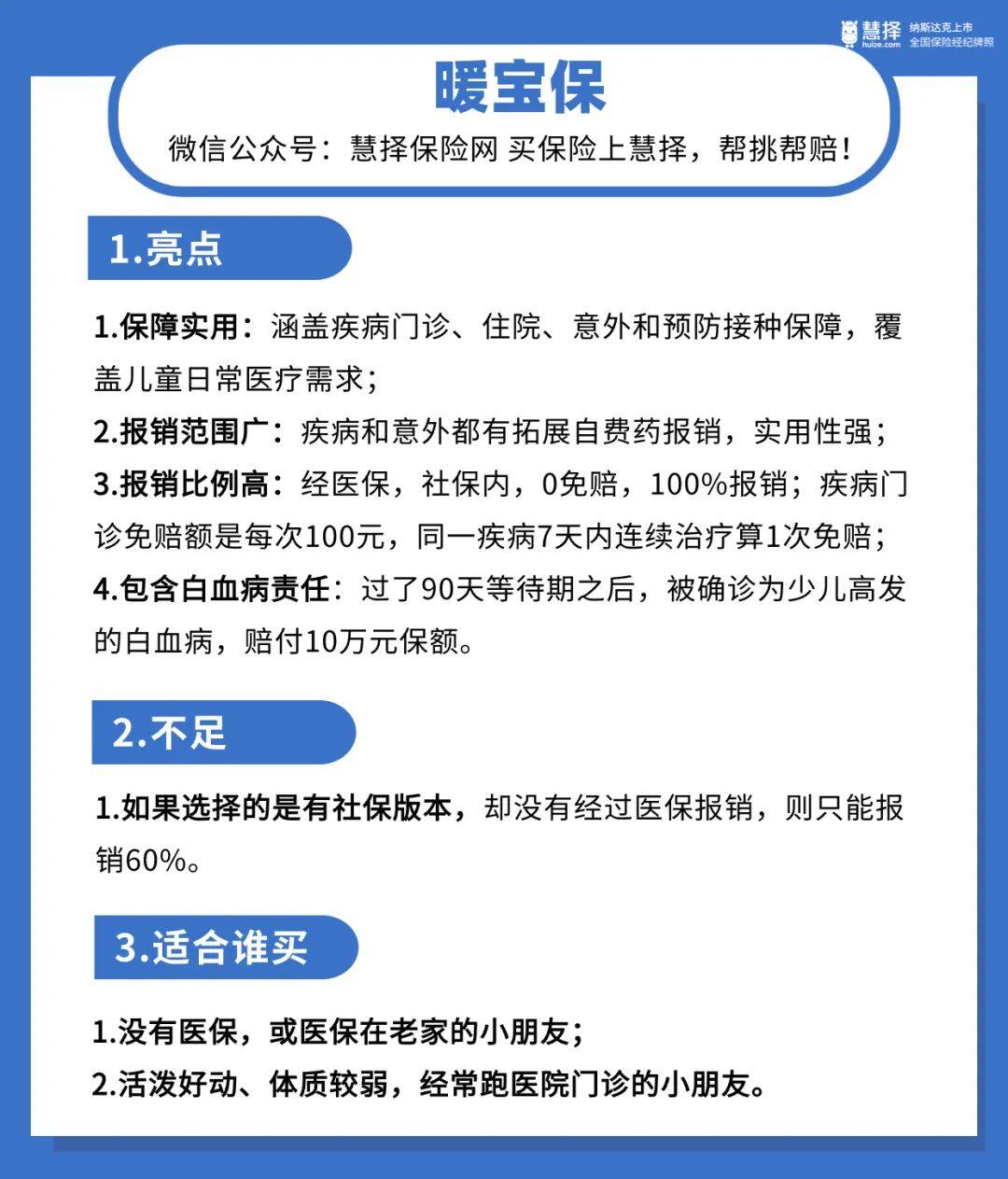 如果孩子沒有醫(yī)保,更建議買一份暖寶保,能替代部分醫(yī)保的作用。