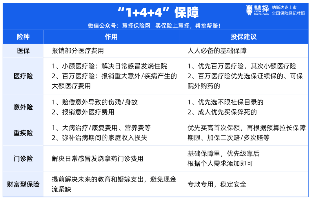 給孩子配齊保障,記住一個(gè)搭配公式就行:1+4+1。