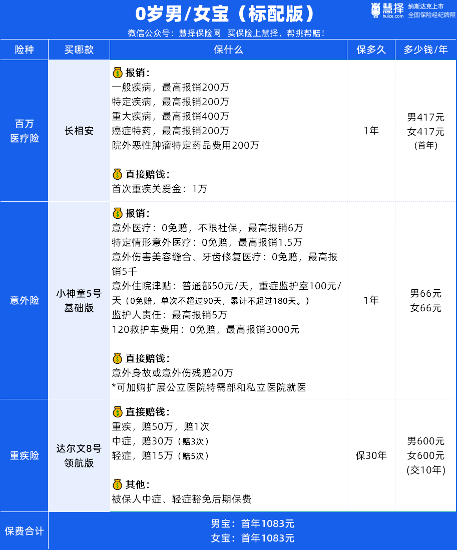 標(biāo)配版著重解決重大的醫(yī)療支出,適合預(yù)算少的家長(zhǎng)。